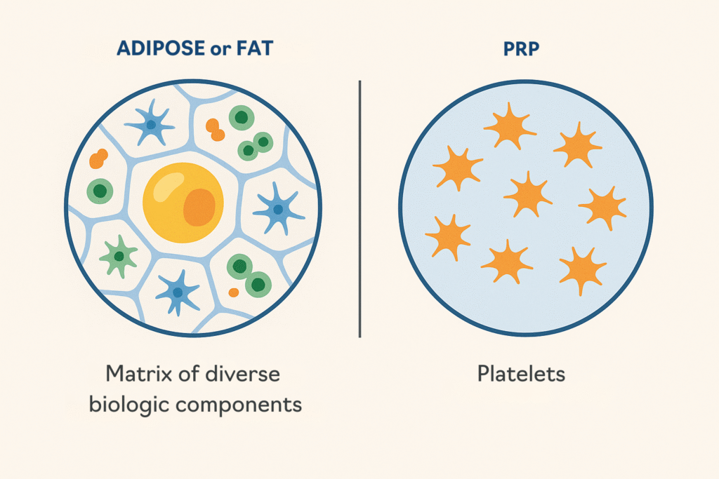 - Biologic Source: PRP is derived from blood, focusing on platelets. Regenerative Matrix Therapy™ uses fat tissue, which contains a much broader set of biologic components.